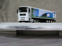 Zugmaschine und Auflieger sind aus Metall.
